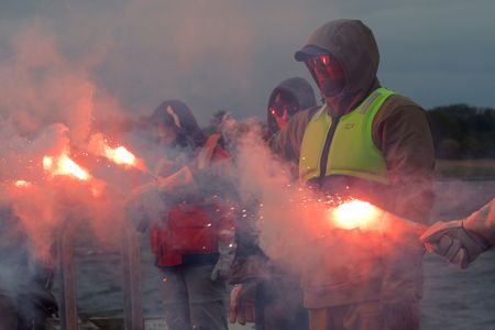 Attendees cheered each others’ efforts to light flares and use water pumps and traded stories of nightmarish near-misses on slippery decks or sinking boats.