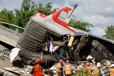 MOSCOW/KYIV (Reuters) -On the eve of peace talks, Ukraine and Russia sharply ramped up the war with one of the biggest drone battles of their conflict, a Russian highway bridge blown up over a passenger train and an ambitious attack on nuclear-capable bombers deep in Siberia.