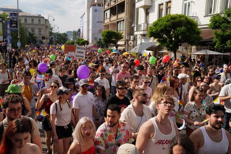 BUCHAREST (Reuters) -Tens of thousands of Romanians joined an LGBTQ Pride march in Bucharest on Saturday, demanding civil union partnership legislation and equal rights after a highly-contested presidential election last month buoyed the far right.