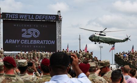 FORT BRAGG, North Carolina (Reuters) -President Donald Trump used a speech honoring soldiers on Tuesday to defend his decision to deploy troops to Los Angeles in a confrontation over his immigration policy, a move critics have decried as a politically motivated over-reaction.
