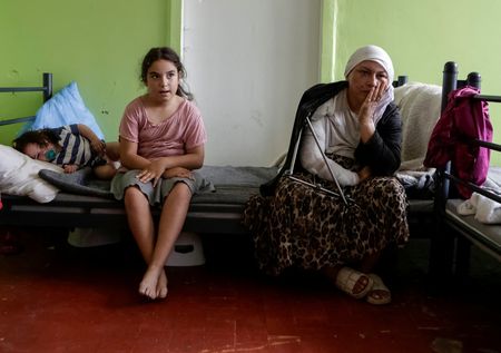 SUMY, Ukraine (Reuters) -Margaryta Husakova, her broken arm secured in a metal orthopedic fixation device, smoked nervously as she sat on the staircase of a refugee shelter in Sumy, a city in northern Ukraine, contemplating what the future holds.