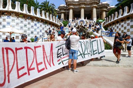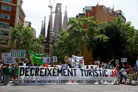 BARCELONA/MADRID (Reuters) -Thousands of people took to the streets of cities in southern Europe on Sunday to demonstrate against overtourism, firing water pistols at shop windows and setting off smoke in Barcelona, where the main protest took place.