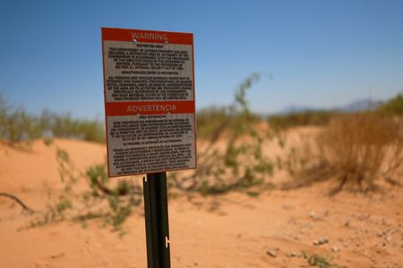Along the international boundary, Reuters saw warning signs posted inside the United States around 45 feet north of the border barrier around every 100 meters, facing south.