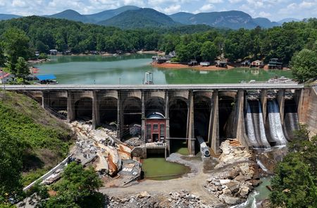 LAKE LURE, North Carolina (Reuters) -When Hurricane Helene’s flood waters slammed into Lake Lure’s century-old dam last September, gouging a massive scar into one embankment and cascading five months’ worth of rain down its sides, town commissioner Dave DiOrio worried it might fail.