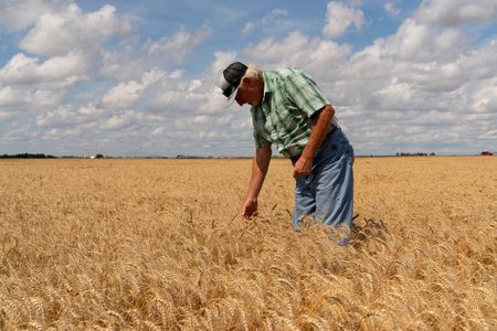 COLBY, Kansas (Reuters) -On a foggy morning in May, Dennis Schoenhals drove a carload of crop scouts around the wheat fields of northern Oklahoma, part of an annual tour to evaluate the health of the crop.