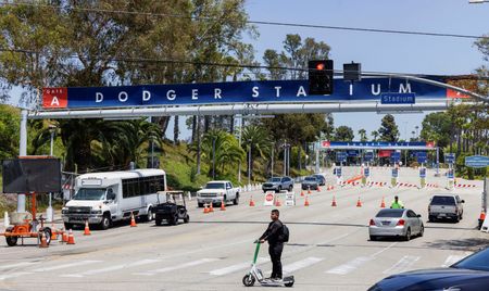 LOS ANGELES (Reuters) -The Los Angeles Dodgers said they had denied U.S. Immigration and Customs Enforcement agents access to the parking lot at Dodger Stadium on Thursday, in the team’s first sign of opposition to immigration raids that have rattled California’s largest city.