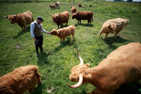 ARRAM, England (Reuters) – Years of floods and low food prices have driven a dairy farm in England’s northeast to stop milking its cows and instead charge visitors to cuddle them.