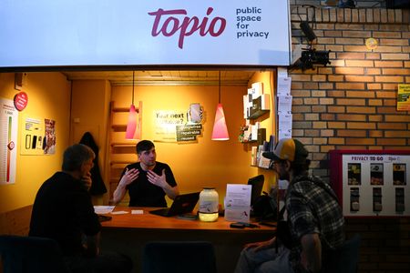 BERLIN (Reuters) -At a market stall in Berlin run by charity Topio, volunteers help people who want to purge their phones of the influence of U.S.