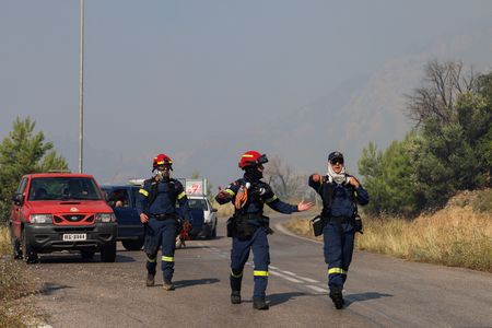 CHIOS, Greece (Reuters) -Hundreds of firefighters battled for a third day to contain wildfires on the Greek island of Chios on Tuesday that have torn through swathes of forest and farmland and forced hundreds of villagers to evacuate, after it declared a state of emergency.