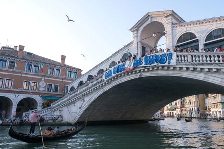 One group has plastered banners on the city’s famous Rialto Bridge reading “No space for Bezos!” and threatened peaceful blockades, complaining that the medieval and Renaissance city needs public services and housing, not celebrities and over-tourism.