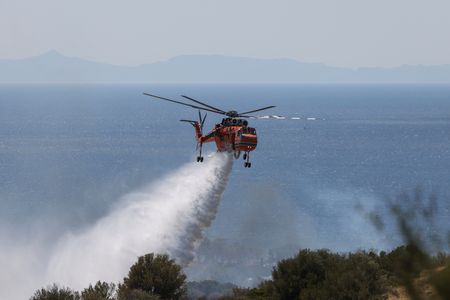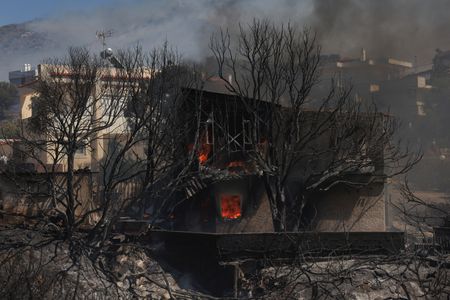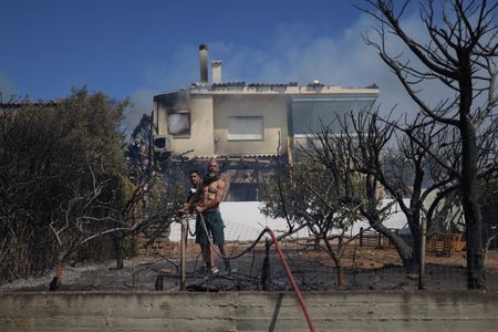 PALAIA FOKAIA, Greece, June 26 (Reuters) – Greek firefighters on Thursday battled a wildfire that burned residences and holiday houses near the coastal town of Palaia Fokaia, 40 km (25 miles) south of Athens, forcing people to flee.