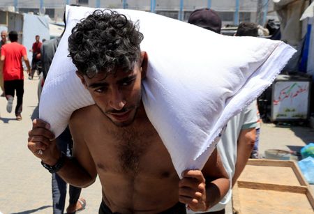 CAIRO/TEL AVIV (Reuters) -Israel has stopped aid from entering northern Gaza but is still allowing it to enter from the south, two officials said on Thursday after images circulated of masked men on aid trucks who clan leaders said were protecting aid, not Hamas stealing it.