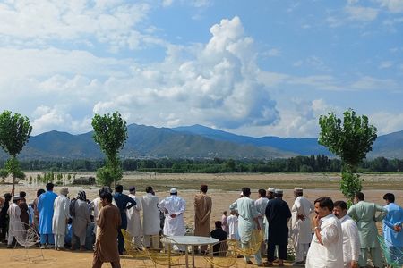 The family were having a picnic breakfast by the Swat River and the children were in the water taking photos when a flash flood occurred, district administrator Shehzad Mahboob said.