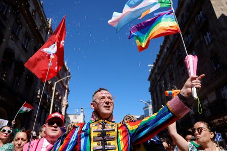 BUDAPEST (Reuters) – Tens of thousands of protesters marched through Hungary’s capital on Saturday as a banned LGBTQ+ rights rally swelled into a mass anti-government demonstration, in one of the biggest shows of opposition to Prime Minister Viktor Orban.