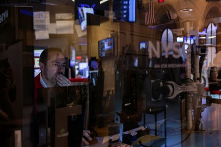 NEW YORK (Reuters) -Global shares edged lower and U.S. Treasury yields rose on Tuesday as investors weighed a host of U.S. economic data and comments from Federal Reserve Chair Jerome Powell to gauge the timing of any interest rate cuts.