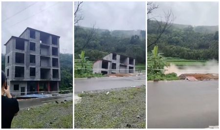 Footage verified by Reuters shows a five-storey building under construction in the town of Xinzhou collapsing into a nearby river within seconds, as the ground beneath it suddenly gave way.