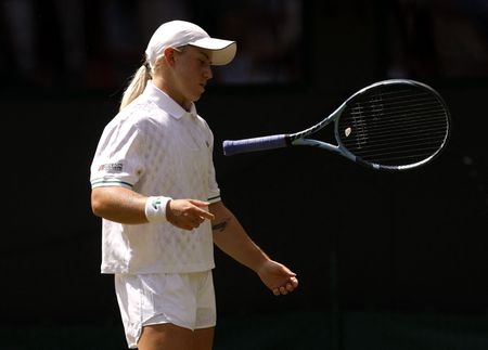 LONDON (Reuters) -Britain’s Sonay Kartal surged into the fourth round of Wimbledon for the first time on Friday with a remarkable turnaround performance against French qualifier Diane Parry as she won nine games in a row to come from 4-1 down to triumph 6-4 6-2.