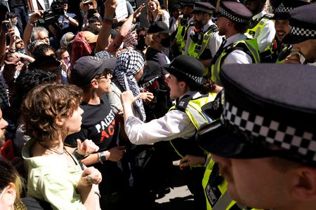LONDON (Reuters) -British police arrested over 20 people on suspicion of terrorism offences after they showed support for the newly banned Palestine Action group in London on Saturday, hours after the proscription came into effect.
