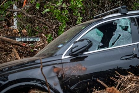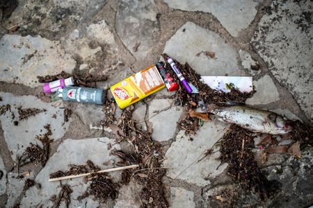 A Reuters photographer saw around 10 cars – some with smashed windshields and doors – that had been swept away by flood waters and lay abandoned near the river.
