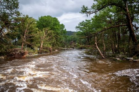 In Comfort, a town about 40 miles down the river from Camp Mystic, huge trees, some over 60 feet tall, were pulled out and scattered around the river by the floods, with several blocking roads.