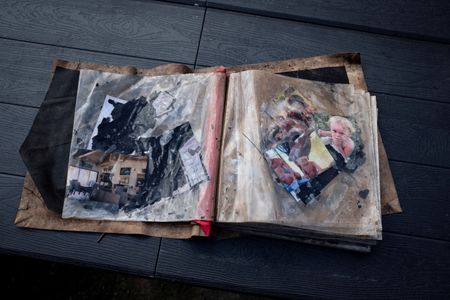 A water-soaked family photo album was among the personal belongings found in flood debris by Sandi Gilmer, 46, a U.S. Army veteran and certified chaplain volunteering in the search operation along the Guadalupe at Hunt.