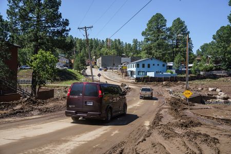 (Reuters) -Torrential rains triggered flash floods in New Mexico that killed at least three people on Tuesday, including two young children, and trapped dozens in homes and vehicles in the resort village of Ruidoso, a state emergency official and a village statement said.