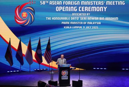 KUALA LUMPUR (Reuters) -Malaysia’s Prime Minister Anwar Ibrahim on Wednesday urged Southeast Asian countries to “act with purpose” and enhance trade among each other in the face of global uncertainty, as regional foreign ministers met amid renewed jitters over U.S.