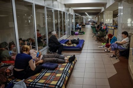 Residents of Kyiv and other major cities spent the night in air raid shelters including metro stations.