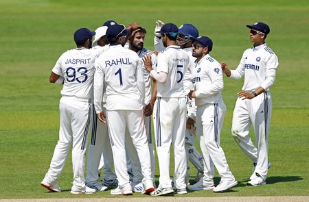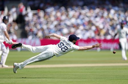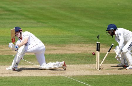 LONDON (Reuters) -Fired-up England reduced India to 58-4 chasing 193 for victory in a highly-charged final session on day four on Sunday as a gripping third test at Lord’s headed for a tense finale.