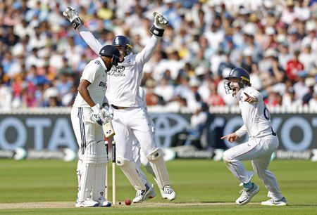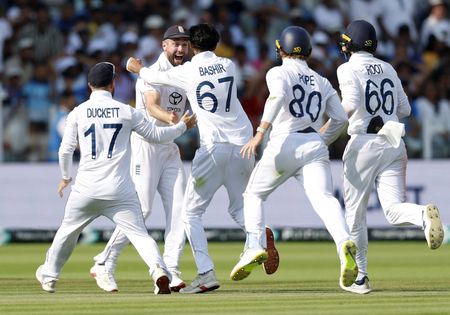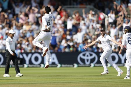LONDON (Reuters) -England stayed calm under intense pressure to beat India by 22 runs on a final day of simmering tension and drama in the third test at Lord’s on Monday and move 2-1 up in the series.