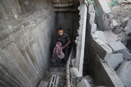 JERUSALEM (Reuters) -At least eight Palestinians, most of them children, were killed and more than a dozen were wounded in central Gaza when they went to collect water on Sunday, local officials said, in an Israeli strike which the military said missed its target.