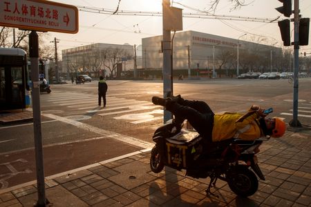 BEIJING (Reuters) -Chinese state firm employee Zhang Jinming makes up for a 24% cut to his salary by delivering food for three hours every night after work and on weekends – and hopes he can avoid awkward encounters with colleagues.