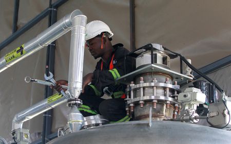 GILGIL, Kenya (Reuters) – In the scrublands of central Kenya, technicians monitor four large metallic tanks where steam heated by the Earth’s crust is used to pull carbon dioxide from the air in an effort to limit global warming.