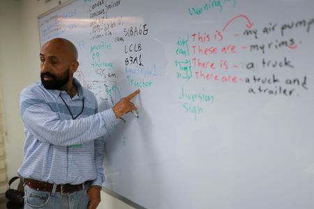 CIUDAD JUAREZ, Mexico (Reuters) -Mexican truck drivers in the border city of Ciudad Juarez have begun studying English in efforts to comply with an executive order by President Donald Trump requiring commercial drivers in the U.S.