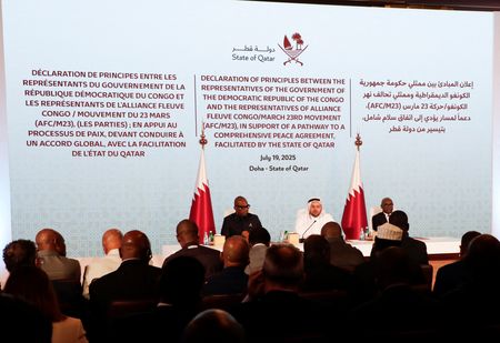 DOHA (Reuters) -Democratic Republic of Congo and the M23 rebel group pledged to sign a peace agreement by August 18, at a ceremony in Doha on Saturday, a sign of progress even as outstanding details need to be negotiated.