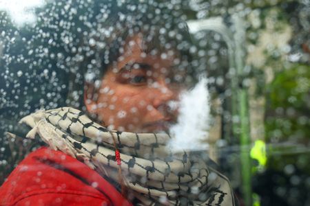 People from the rally, some wearing black and white Palestinian scarves, were taken away in police vans.