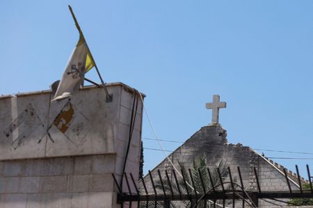 Photos show its roof has been hit close to the main cross, scorching the stone facade, and shattering windows.
