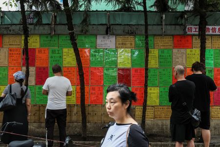 BEIJING (Reuters) -China saw 6.95 million urban jobs created in the first half of the year, achieving 58% of the country’s annual job creation target, the human resources ministry said on Tuesday.