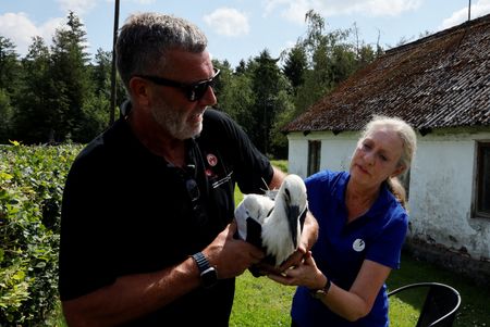 COPENHAGEN (Reuters) -Once extinct in Denmark, the white stork is making a comeback with the highest number of nestlings in decades, sparking hope it may once again become a familiar sight in the Nordic country.
