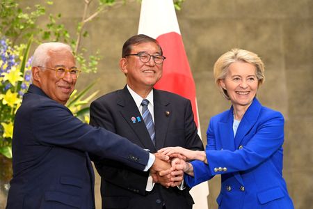 TOKYO (Reuters) -The European Union and Japan will work more closely to counter economic coercion and address unfair trade practices, European Commission President Ursula von der Leyen told reporters on Wednesday.