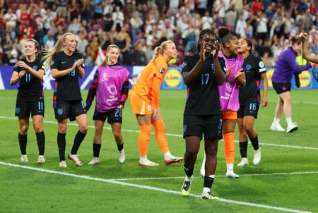 GENEVA (Reuters) -England’s newest hero Michelle Agyemang had her teammates singing her praises after her last-gasp equaliser saved the defending champions from certain elimination, saying the sky is the limit for the 19-year-old.