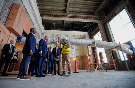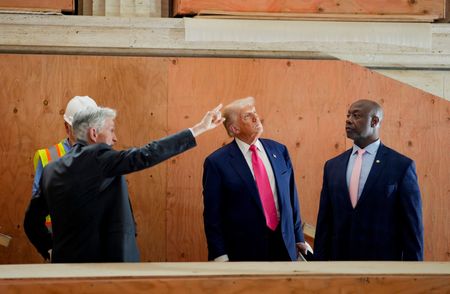 WASHINGTON (Reuters) -President Donald Trump locked horns with Federal Reserve Chair Jerome Powell during a rare presidential visit to the U.S. central bank on Thursday, criticizing the cost of renovating two historical buildings at its headquarters and pressing the case for lower interest rates.