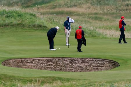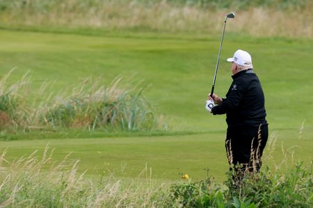 EDINBURGH, Scotland (Reuters) -U.S. President Donald Trump kept a low profile on his Scottish golf course on Saturday, ahead of meetings with top British and European leaders, as questions swirled at home about his ties to disgraced financier and sex offender Jeffrey Epstein.