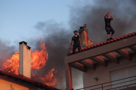 Two houses caught fire while residents of the nearby village Krioneri were instructed by authorities to leave towards Athens.