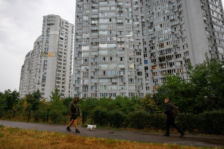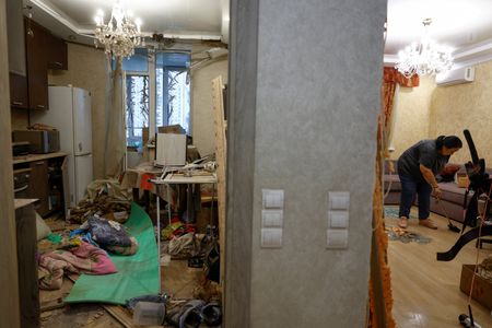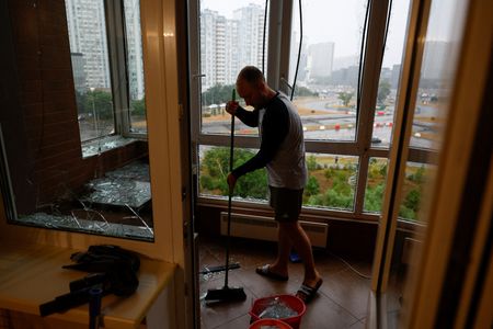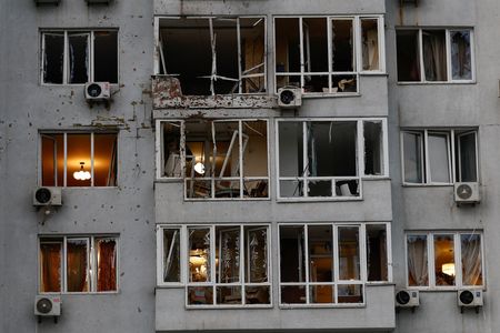 KYIV (Reuters) -A Russian overnight air attack wounded eight residents of an apartment building in Kyiv, including a three-year-old child, authorities said on Monday, while the Ukrainian air force said a town hosting a key air base had been attacked.