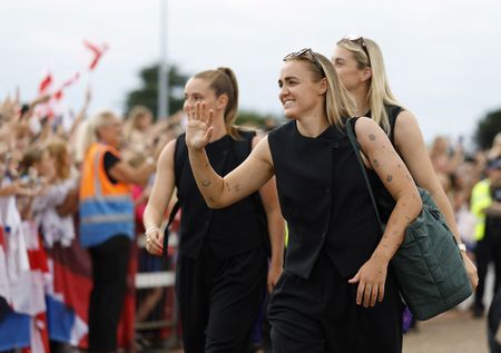 LONDON (Reuters) -The England women’s soccer team have returned home on Monday to a heroes’ welcome following their Euro 2025 triumph, with government ministers hosting a reception to mark a victory hailed as an inspiration for young people across the nation.