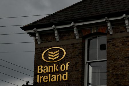 DUBLIN (Reuters) -Bank of Ireland shares fell 3% on Tuesday after it set aside more money than expected to cover potential losses in its U.S. acquisition finance business in the first half of the year when lower interest rates cut its pre-tax profit by one-third.