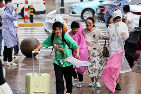SHANGHAI (Reuters) -Shanghai relocated more than 280,000 people, halted hundreds of flights and ferry services and imposed speed limits on roads and railways on Wednesday as a tropical storm whipped eastern China with gales and heavy rain.