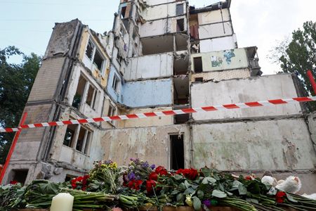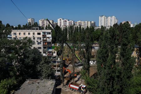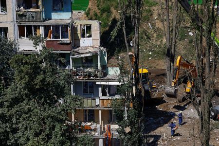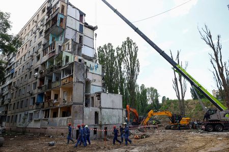 KYIV (Reuters) -Ukrainian rescuers recovered more than a dozen more bodies from the rubble of a collapsed apartment block in Kyiv overnight, bringing the death toll from Russia’s worst air strike of the year on Ukraine’s capital to 31.