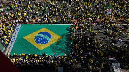 In Sunday’s protests, Bolsonaro supporters, wearing Brazilian national team jerseys, chanted “Magnitsky” and insulted Moraes and Lula.
